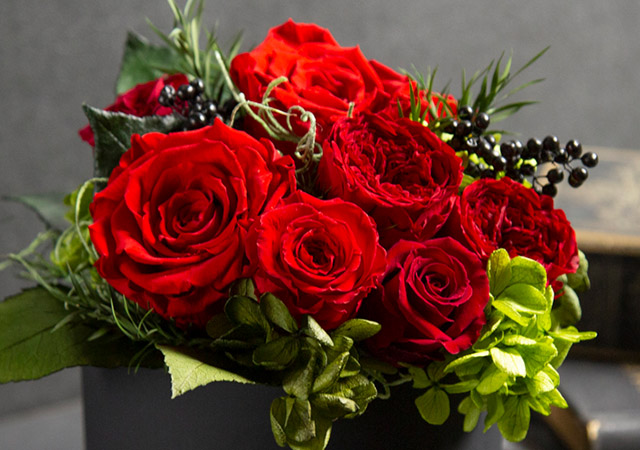 生花に化粧品にも用いられる保湿剤や染料を吸収させることで、色鮮やかで瑞々しい花姿を、長期間そのままに愉しめるよう仕立てた特別な花。それがプリザーブドフラワーです。