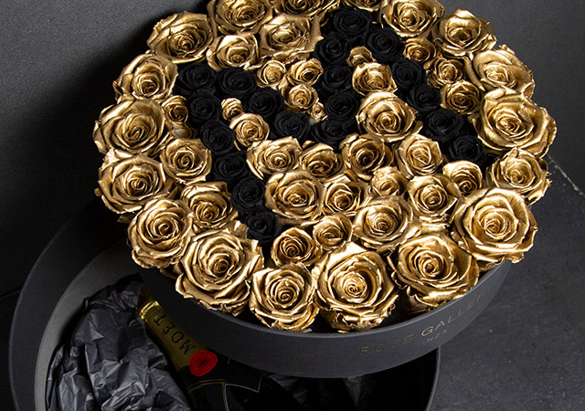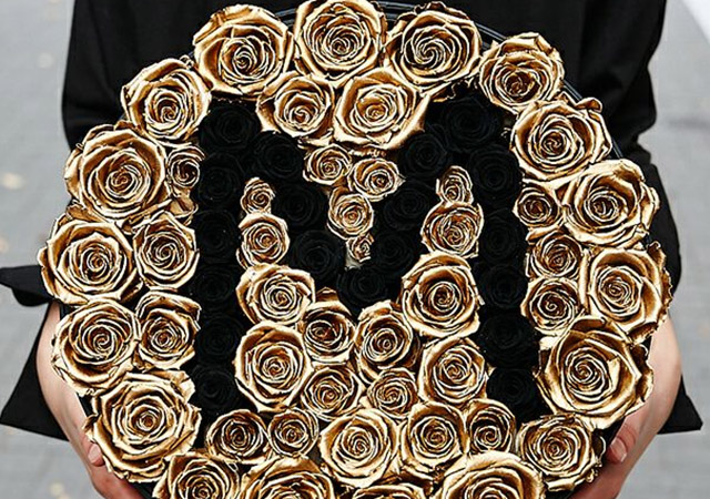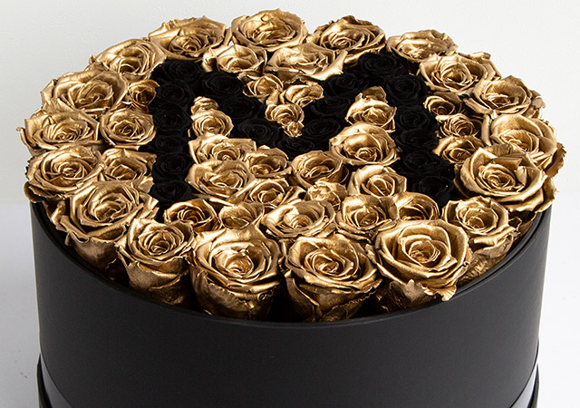 イニシャルをバラで象るデザインは、記念日や誕生日にぴったり。