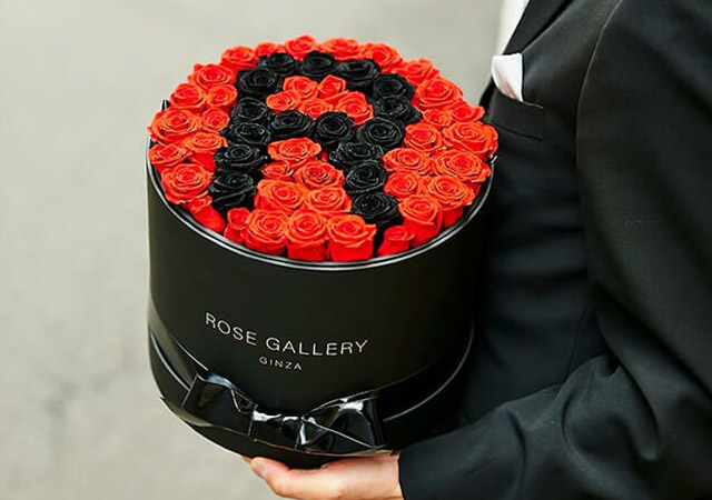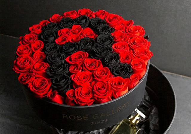 イニシャルをバラで象るデザインは、記念日や誕生日にぴったり。