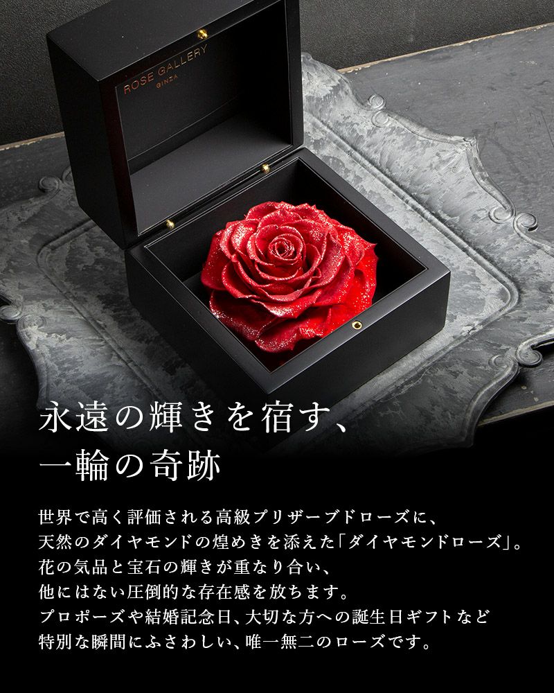 世界で高く評価される高級プリザーブドローズに、天然ダイヤモンドの煌めきを添えた「ダイヤモンドローズ」。