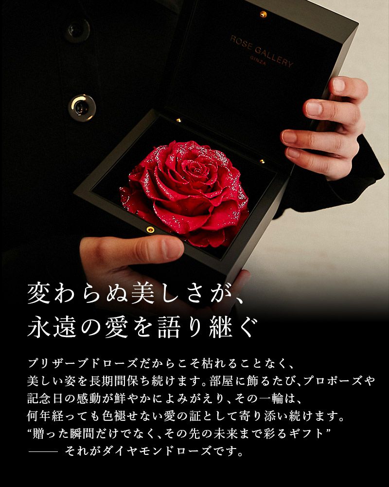 “贈った瞬間だけでなく、その先の未来まで彩るギフト”――それがダイヤモンドローズです。