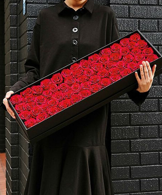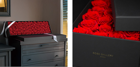 箱を開けた時の華やかな見た目で、還暦のお祝いも盛大に祝福できます。フタをあけた瞬間の驚きと、バラに込められたメッセージが感動を演出します。