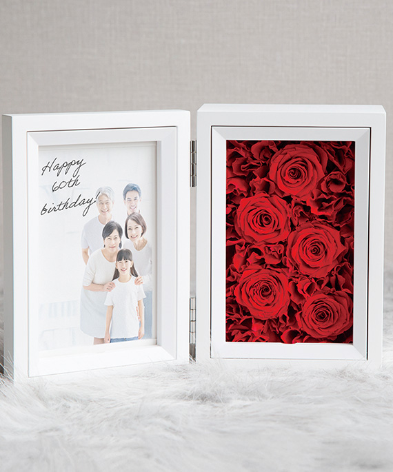 還暦の記念写真や家族写真と一緒にプレゼントするのはいかがでしょうか?