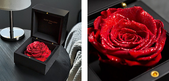 本物のダイヤモンドが織りなす上品な輝きが特徴のダイヤモンドローズ。天然ダイヤモンドとラメがローズにプレミアムな輝きを加え、見る人を惹きつけます。