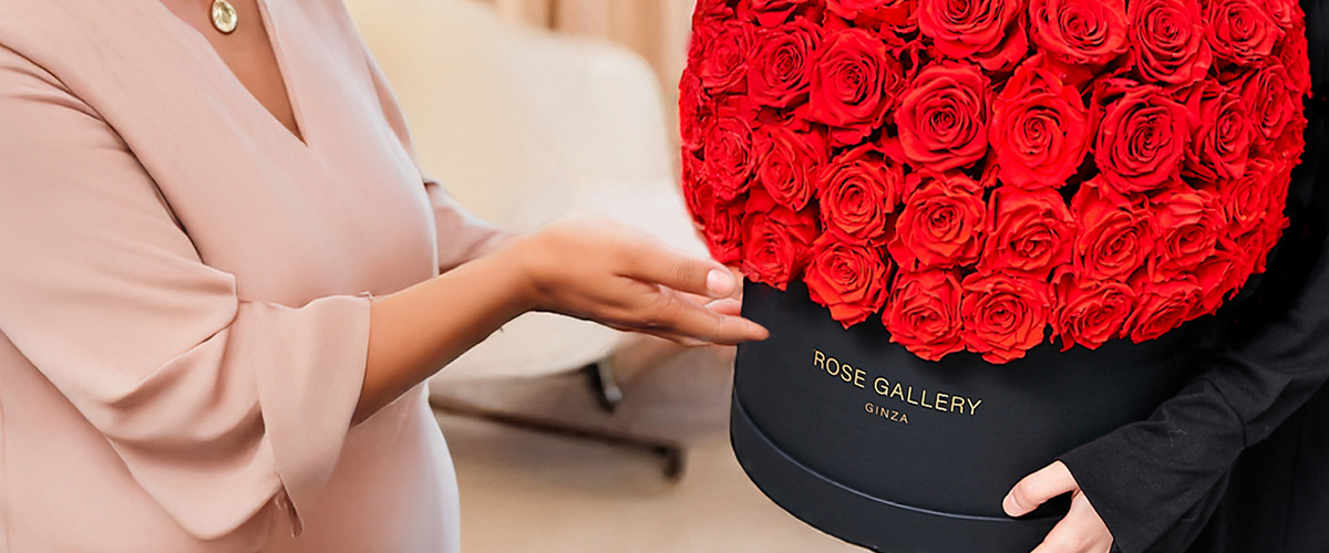 最高級のバラを用いた圧倒的な存在感のデザインが、一生に一度の特別なお祝いに華やかさを添えます。